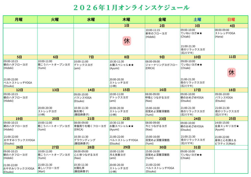 PDFファイルはこちらからオンラインスケジュール 2026年1月ご確認いただけます。